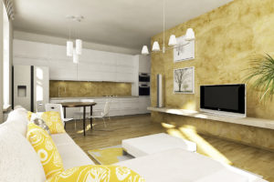 Koncepční návrh interiéru pak sloužil jako vodítko pro realizaci záměru. Hlavní dominantou prostoru je barevně dekorovaná stěna. Zbývající porchy jsou bíle a dávají vyniknout charakteru dřevěné podlahy. Okna jsou stíněna textilními shrnovacími roletami.