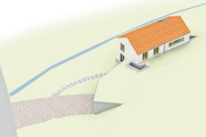 Stavební pozemek se nachází na okraji stabilizované zástavby historického jádra obce. Pozemek v jeho severní polovině protíná potok, vytékající z návesního rybníku, který vytváří širší koryto. Koryto je osázeno vzrostlými smrky, které vytváří na stavebním pozemku výraznou optickou bariéru.